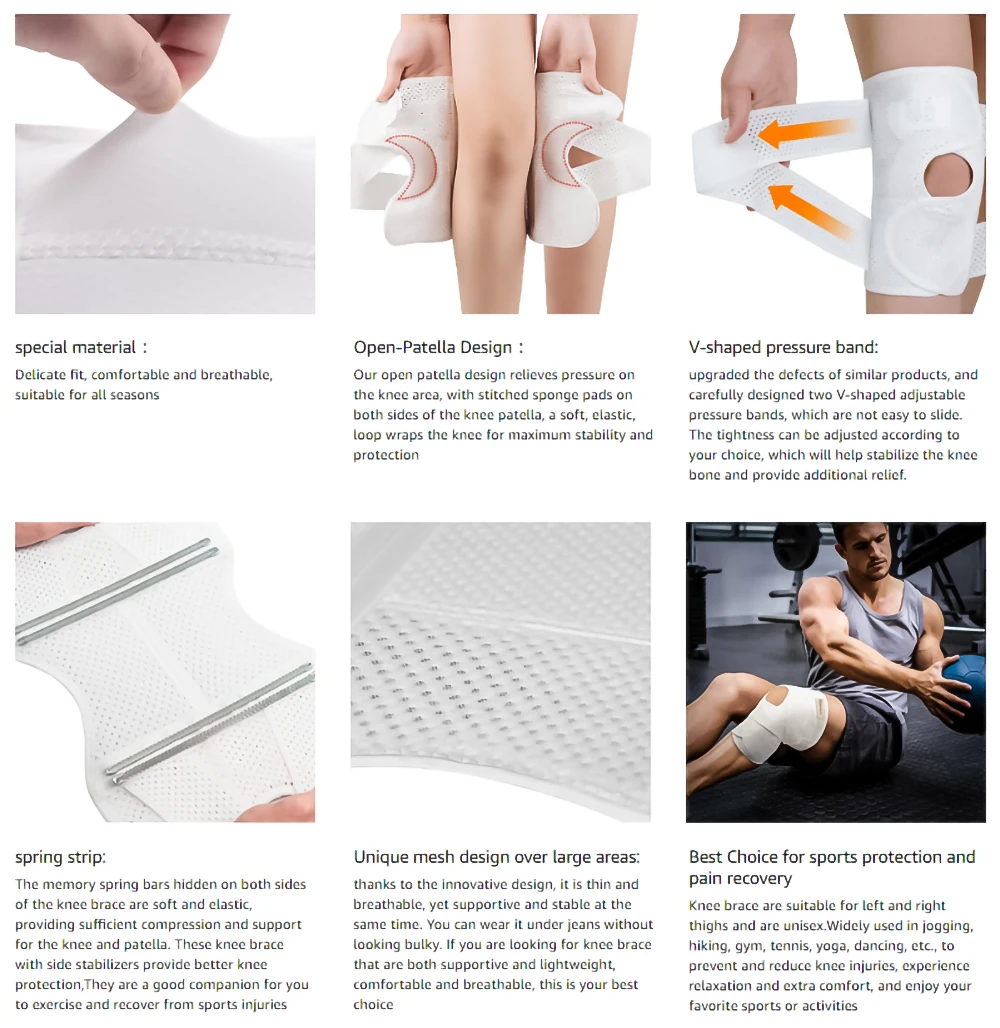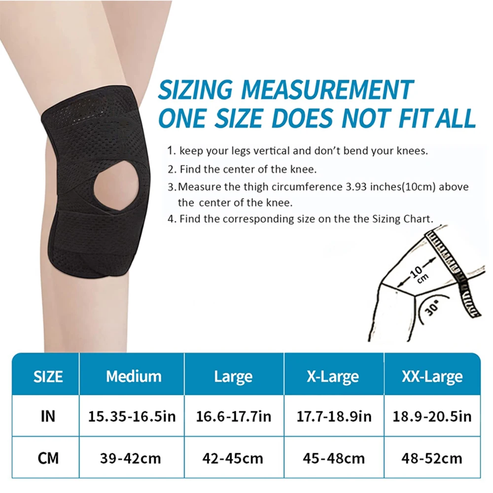 【Knee Support Technology】Place memory spring stabilizers (4 springs) on both sides of the knee brace to provide enough compression and support for the knee and patella, effectively relieve Knee pain, ACL, MCL, arthritis, strain, sprain, meniscus tear, etc. It's the BEST CHOICE for sports protection and pain recovery.